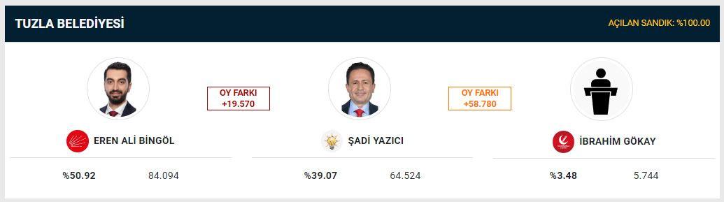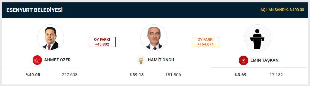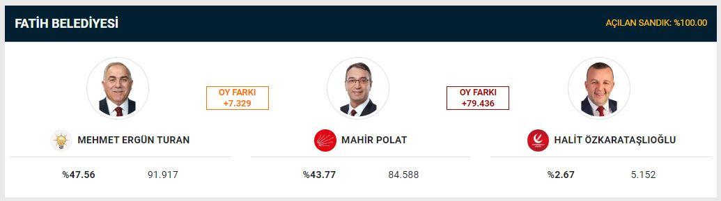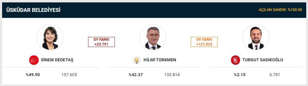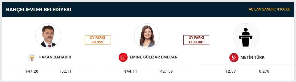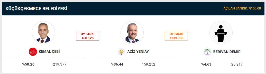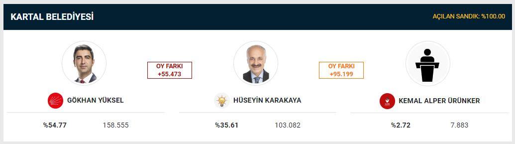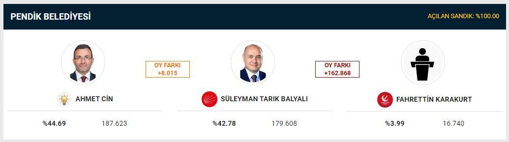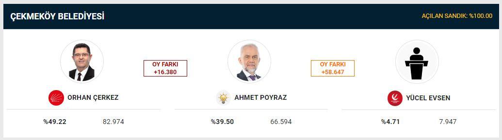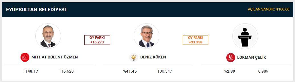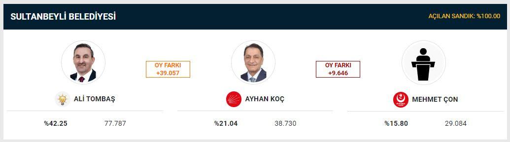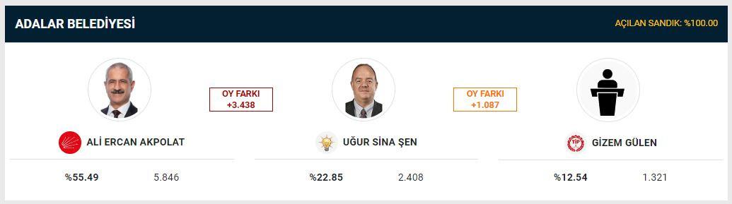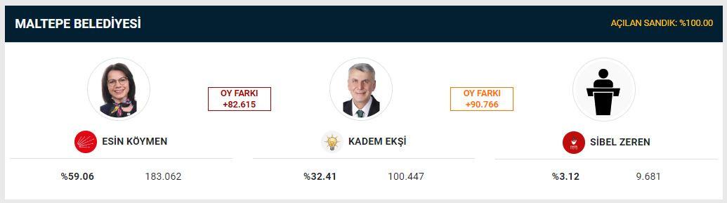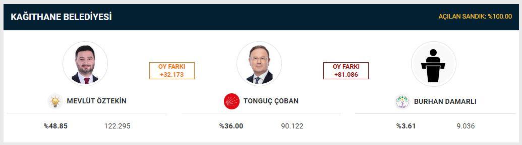 Murat Kurum 100,577 |AK Parti 77,887 | Murat Kurum fazla 22,690
