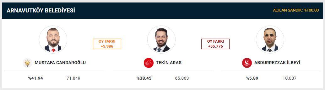 Arnavutköy, Bağcılar, Bahçelievler, Başakşehir, Esenler, Fatih, Güngören, Kağıthane, Pendik, Sultanbeyli, Sultangazi, Ümraniye ve Zeytinburnu’nda ise AK Parti’li adaylar seçimi önde bitirdi.