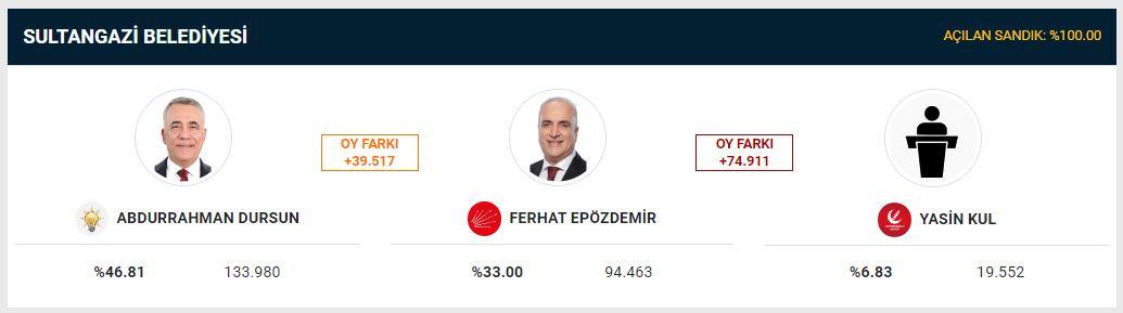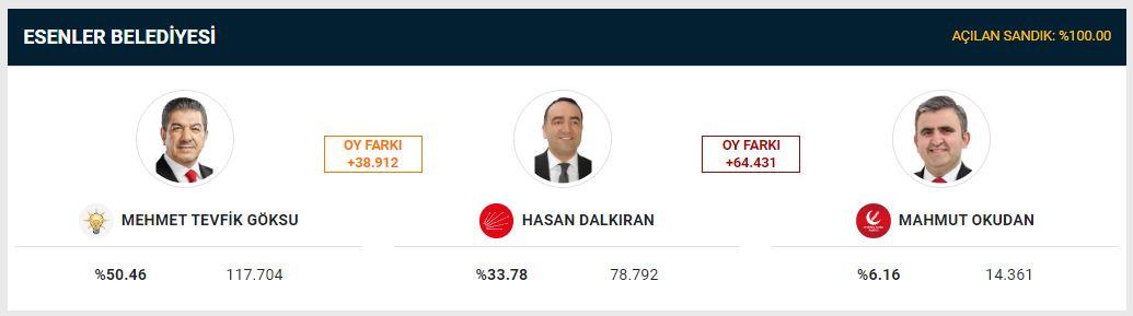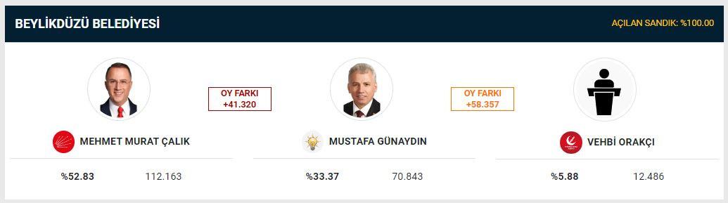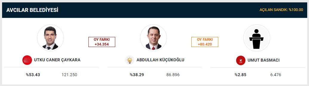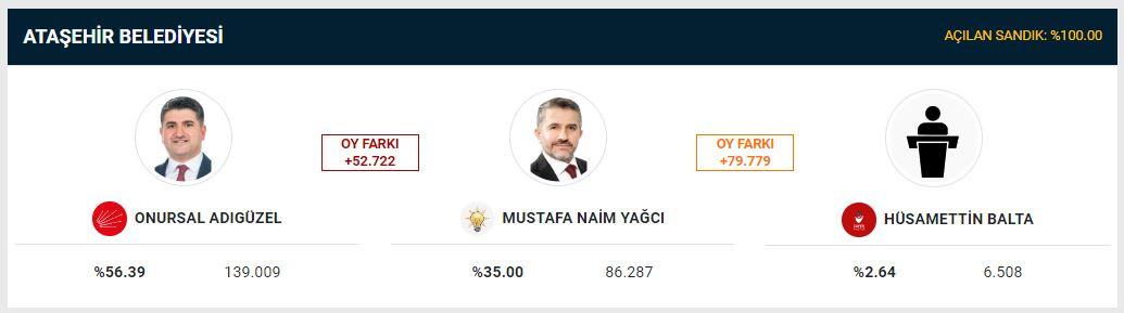 Murat Kurum 44,853 |AK Parti 40,333 | Murat Kurum fazla 4,520