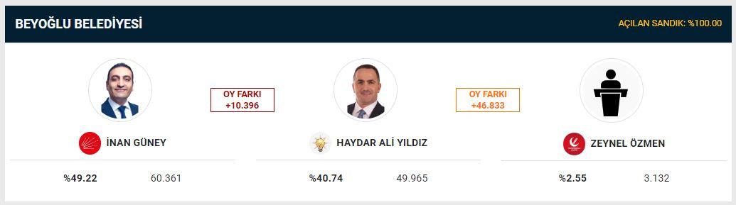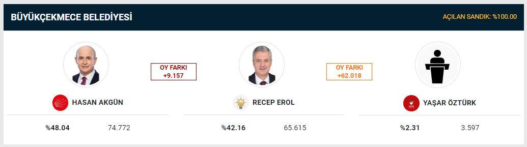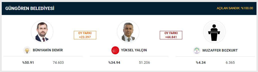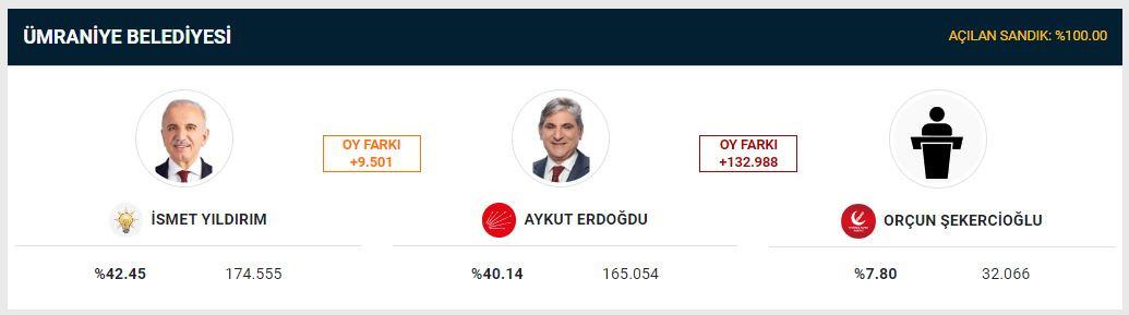 Öte yandan oyların yeniden sayıldığı Gaziosmanpaşa’da Yeniden Refah Belediye Başkan Adayı Ahmet Yılmaz’ın 17 bin 877 oy alması dikkat çekti. Olası ittifakta bu oylar da AK Parti adayına gidecekti ve seçim açık ara farkla AK Parti lehine bitecekti.