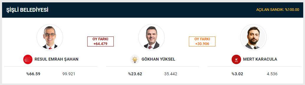 Seçimlerde, Adalar, Ataşehir, Avcılar, Bakırköy, Bayrampaşa, Beşiktaş, Beykoz, Beylikdüzü, Beyoğlu, Büyükçekmece, Çatalca, Çekmeköy, Esenyurt, Eyüpsultan, Gaziosmanpaşa, Kadıköy, Kartal, Küçükçekmece, Maltepe, Sancaktepe, Sarıyer, Silivri, Şile, Şişli, Tuzla ve Üsküdar’da CHP’li belediye başkan adayları kazandı.