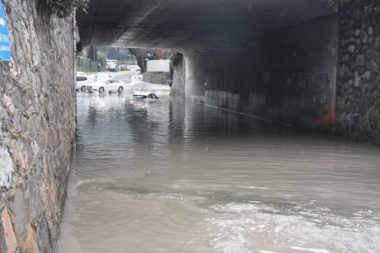 Sağanak nedeniyle Kemalpaşa Ulucak alt geçidi suyla doldu.