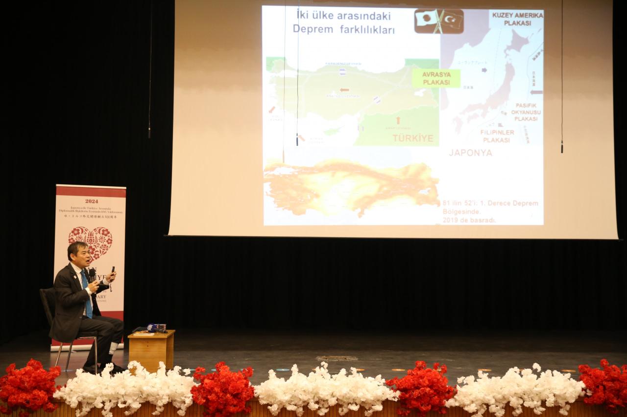 Yoshinori Moriwaki, konuşmasında ayrıca deprem tatbikatlarının ve yaşam üçgeninin önemine değindi.