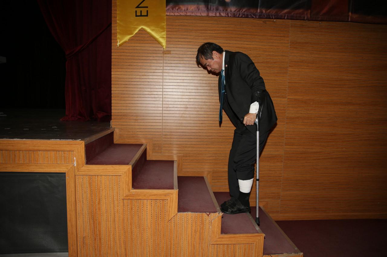 Geçirdiği kaza sonucu sempozyuma koltuk değnekleri ile katılan Yoshinori Moriwaki, Türkiye’de ve dünyada yaşanan depremlerle ilgili bilgi verdi.