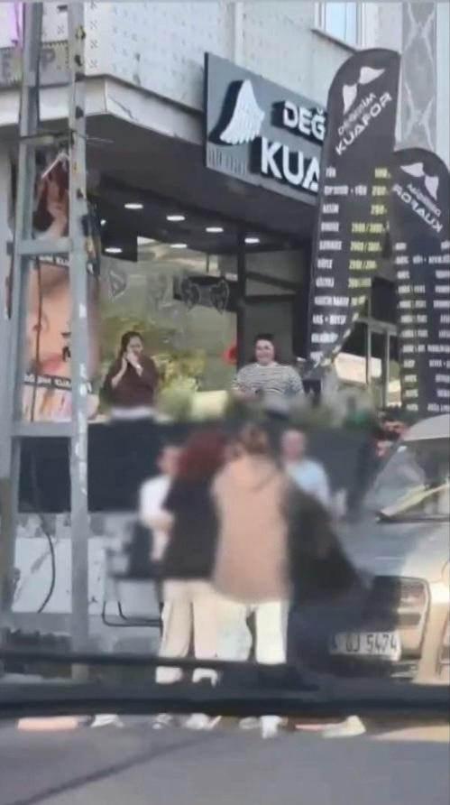 Sokak ortasında yaşanan kavga, güvenlik kamerası ve cep telefonu kameraları tarafından görüntülendi. Görüntülerde, otomobilden inen anne ve kızın daha önce tartıştıkları Nihal A.’yı yere yatırıp darbettikleri görülüyor. Tarafların yakınlarının karıştığı kavgayı çevredekiler ayırmaya çalışıyor.