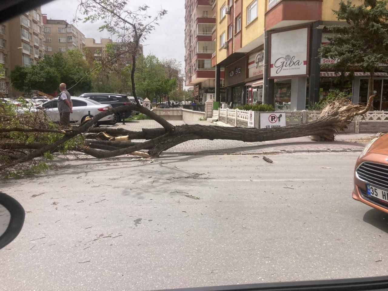 Konya’nın merkez Selçuklu ilçesi Hulusi Baybal Caddesinde devrilen ağaç nedeniyle yol tamamen trafiğe kapandı.