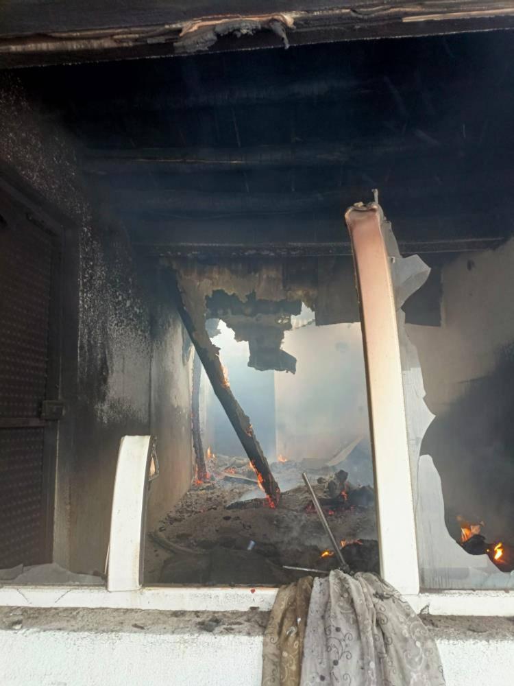 Yıldırım sesi ve yanık kokusuyla uyanan Baytar, aile fertlerini kısa sürede evden çıkartırken, ev ise yanarak kullanılamaz hale geldi.