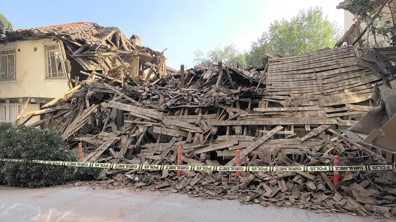 Ekipler, çevrede güvenlik önlemi aldı, sokak trafiğe kapatıldı. Belediye ekipleri iş makineleriyle enkazı kaldırmak için çalışma başlattı.
