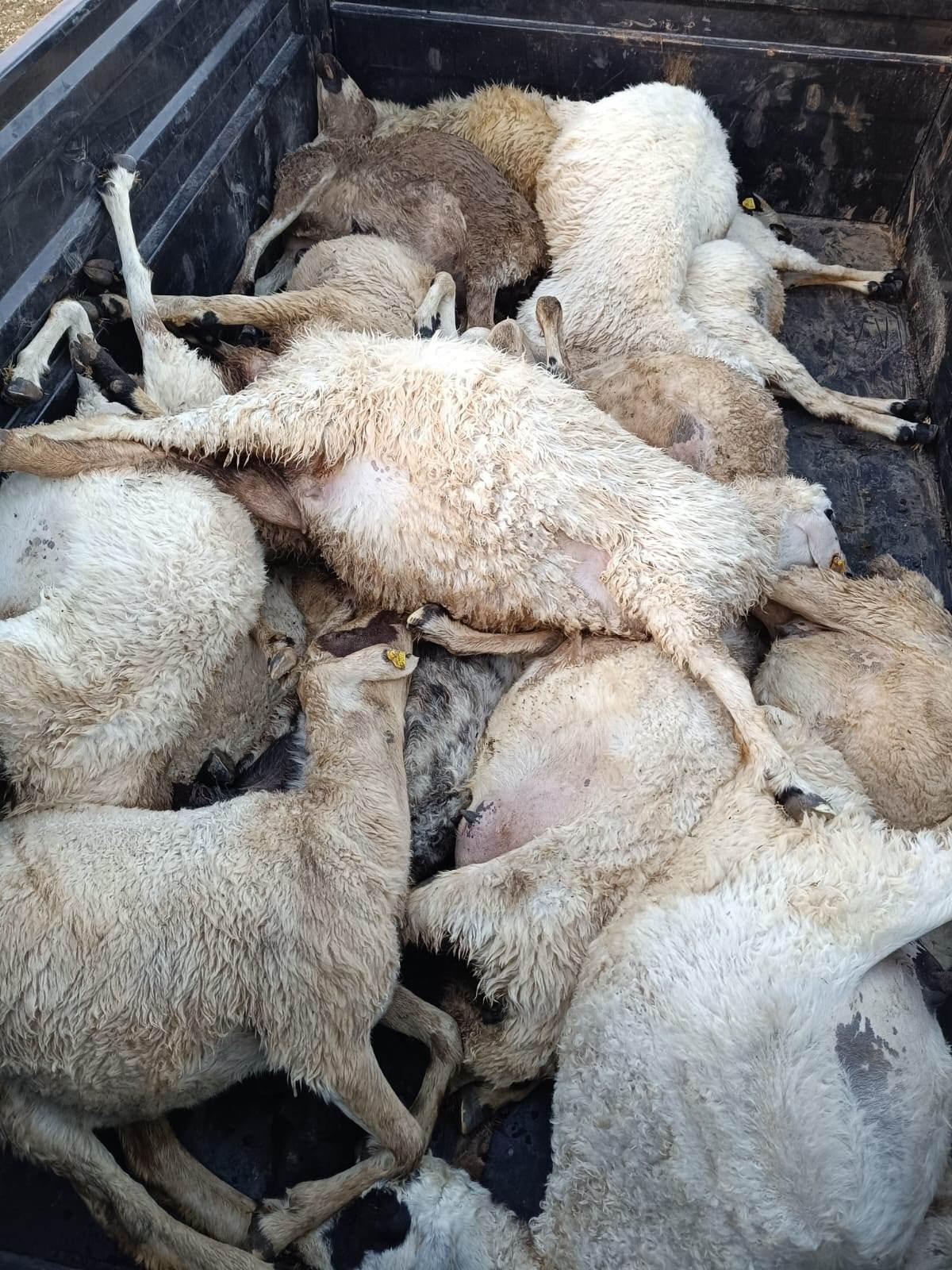 Sağanak ile birlikte çakan yıldırımın koyun sürüsüne isabet etmesi sonucu 16 küçükbaş hayvan telef oldu.
