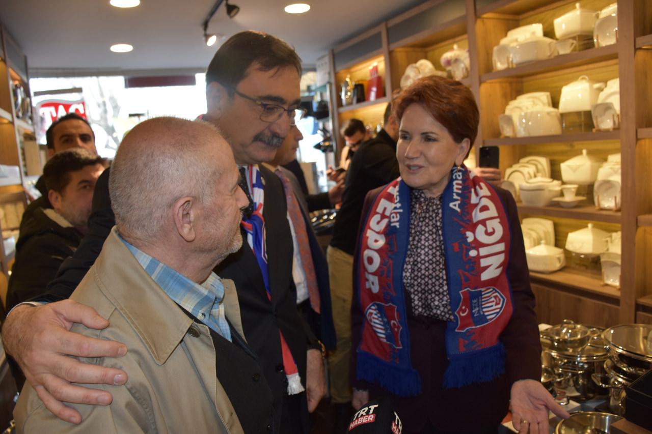 İYİ Parti Genel Başkanı Meral Akşener, Niğde merkezde Şadırvan Park’ta faaliyet gösteren esnafı ziyaret ederek, partisinin Niğde Belediye başkan adayı Naim Osman Erem’e destek istedi.