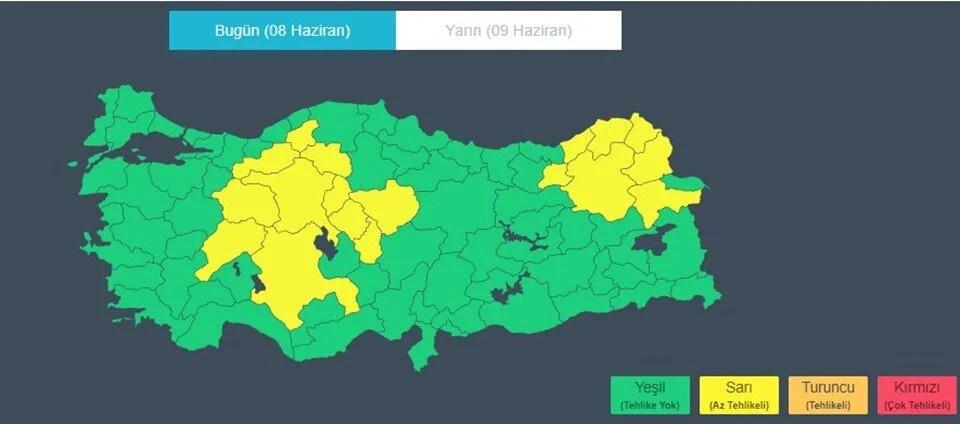 Meteoroloji Genel Müdürlüğü, 18 il için sarı kodlu uyarı yayımladı. Etkili olmsı beklenen gök gürültülü sağanak yağış nedeniyle vatandaşların dikkatli ve tedbirli olmaları istendi.