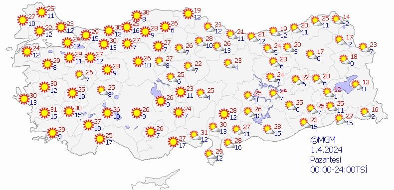 Meteoroloji Genel Müdürlüğü tarafından yapılan son değerlendirmelere göre, ülkemizin genelinde yağış beklenmiyor. Bütün bölgelerin az bulutlu ve açık, öğle saatlerinden sonra İç Anadolu’nun doğusu, Doğu Akdeniz’in iç kesimleri, Orta ve Doğu Karadeniz’in iç kesimleri, Doğu Anadolu’nun batısı ile Güneydoğu Anadolu’nun kuzeybatısının yer yer parçalı bulutlu geçeceği tahmin ediliyor.
