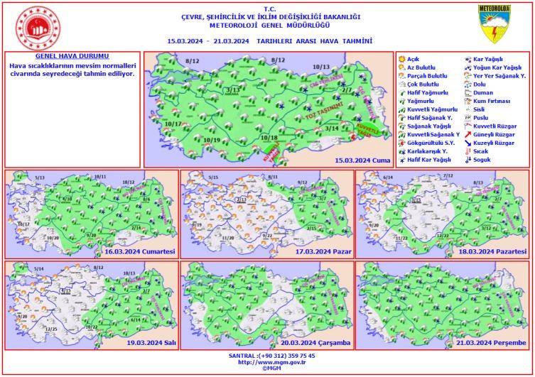 Güneydoğu kesimlerinde toz taşınımı beklendiğinden yaşanabilecek olumsuz şartlara karşı dikkatli ve tedbirli olunması gerekmektedir.