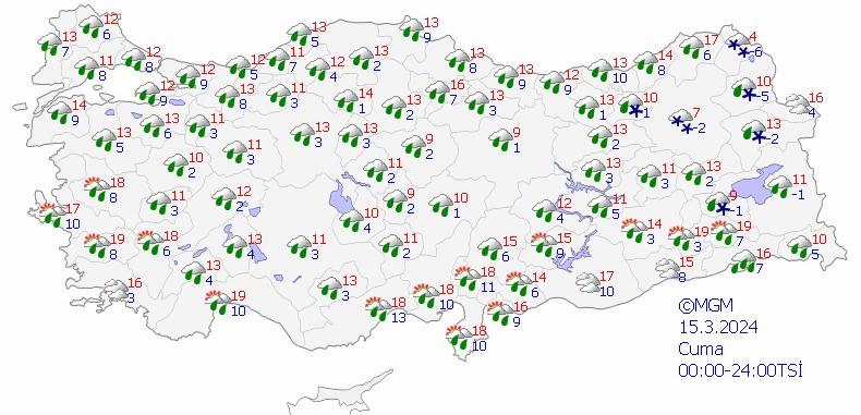 Parçalı ve çok bulutlu, öğle saatlerinden itibaren aralıklı yağmurlu, yüksekleri karla karışık yağmurlu
