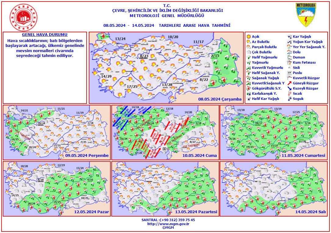 Ülkemiz genelinde hava sıcaklıklarının 2 ila 4 derece artacağı tahmin ediliyor.