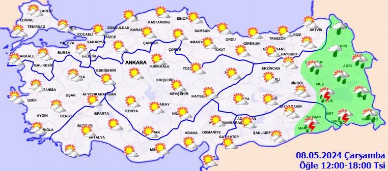 Meteoroloji Genel Müdürlüğü tarafından yapılan son değerlendirmelere göre, ülkemiz genelinin parçalı ve yer yer çok bulutlu, Doğu ve Güneydoğu Anadolu’nun doğusu ile Edirne ve Kırklareli çevrelerinin yerel sağanak ve yer yer gök gürültülü sağanak yağışlı geçeceği tahmin ediliyor.