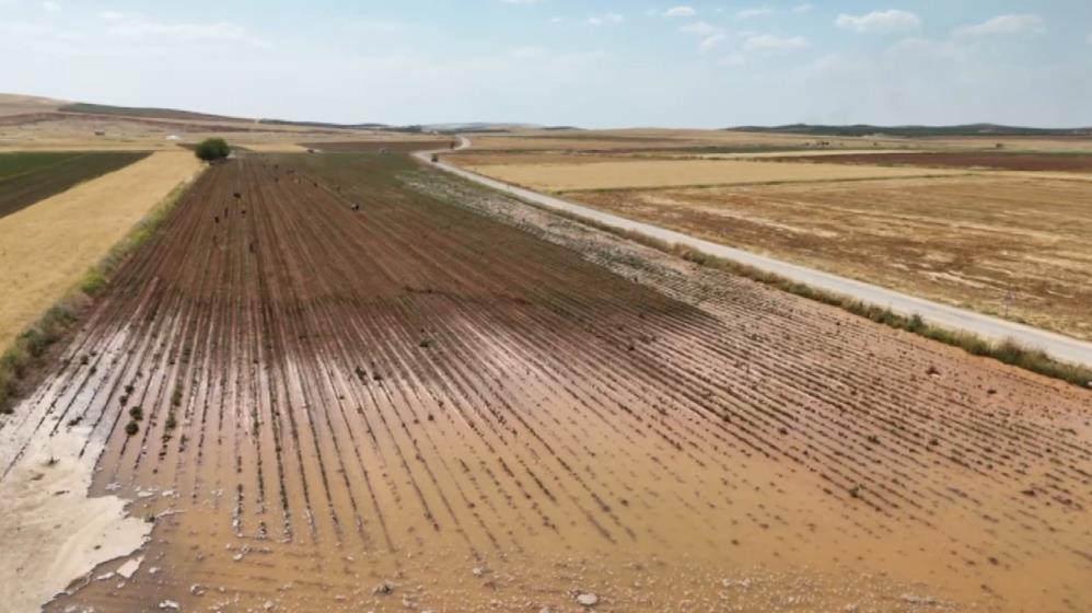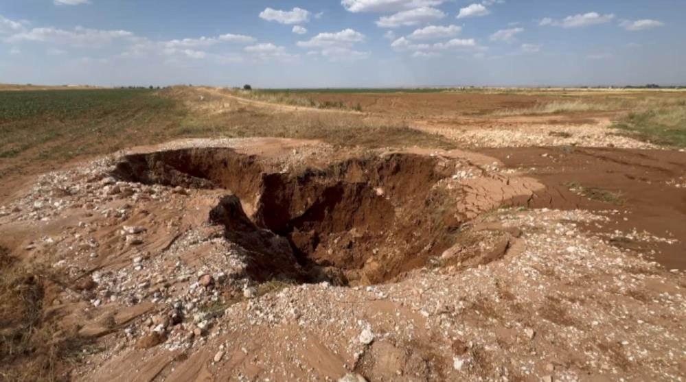 Metrelerce yüksekliğe fışkıran tazyikli su, görevlilerin müdahalesiyle kontrol altına alındı.Su küpünün patladığı bölgede dev obruk oluşurken pamuk tarlasında ise zarar meydana geldi.