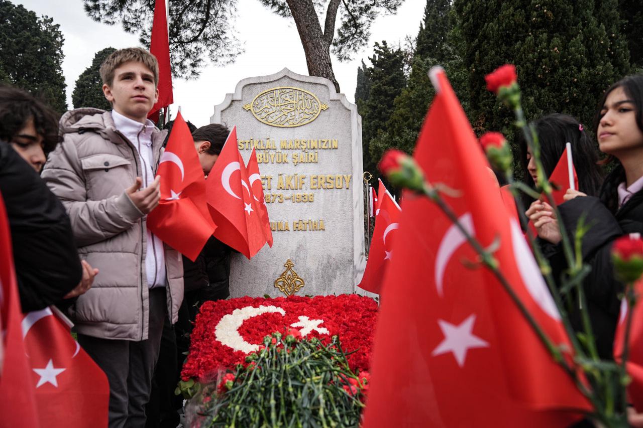 Türk milletinin bağımsızlık mücadelesinin simgesi İstiklal Marşı’nın yazarı, milletvekili, şair ve mütefekkir Mehmet Akif Ersoy’un mezarının başında yapılan tören, saygı duruşu ve İstiklal Marşı’nın okunmasıyla başladı.