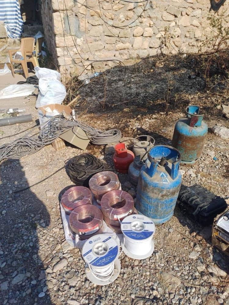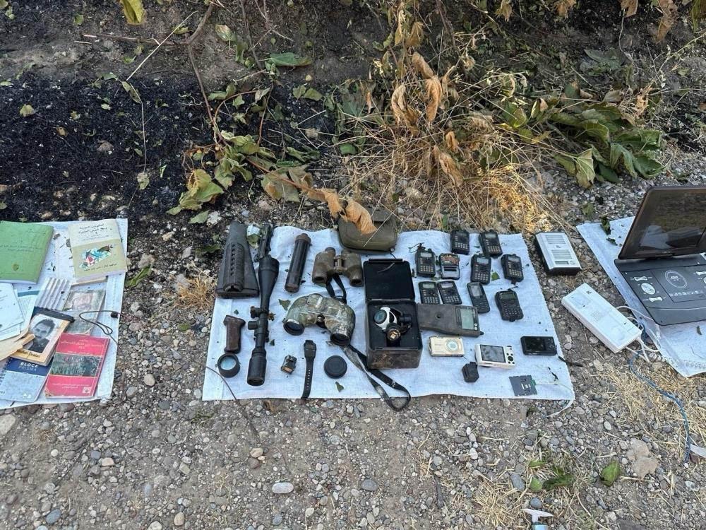 Bakanlık bölgede teröristlerden ele geçirilen malzemeleri şöyle sıraladı:”1 adet RPG-7 roketatar, 2 adet RPG-7 mühimmatı, 3 adet sevk fişeği, 2 adet el bombası, 2 adet el dürbünü, 1 adet 12 x dürbün, 1 adet PTZ kamera, 9 adet telsiz, 3 adet kamera, 20 adet termal şemsiye, 2 adet silah dipçiği, 1 adet susturucu, 1 adet televizyon, 1 adet tuşlu telefon, 3 adet oyun cihazı CVD okur, 1 adet oyun konsolu, 1 adet oyun adaptörü, 1 adet aç konuş telefon diyafonu, 1 adet mini televizyon, 6 adet EYP yapımında kullanılan kablo, 1 çuval pil, 2 adet büyük tüp, 4 adet küçük tüp.”