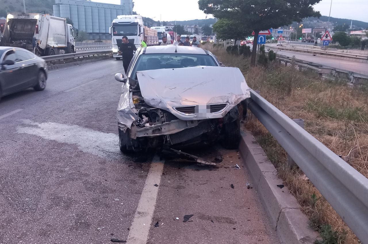 Çarpmanın etkisiyle savrulan otomobil, yol kenarındaki bariyerlere çarparak durabildi.