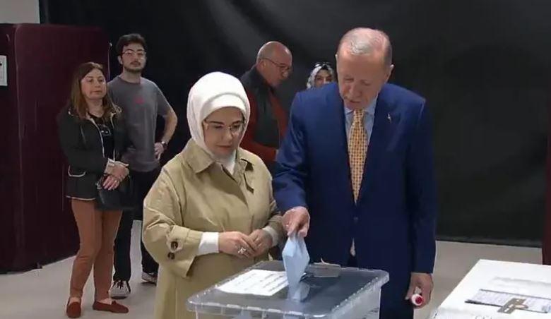 Başkan Erdoğan ve eşi Emine Erdoğan oylarını kullanmak için Üsküdar Kısıklı’daki konutundan çıkarak, saat 13.15’te Saffet Çebi Ortaokulu’na geldi.