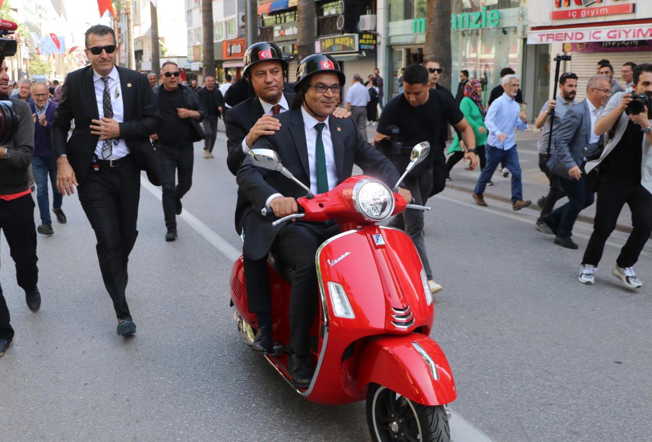 “Seçimlerden sonra bu otobüsün üstünden ilk defa konuşma yapıyorum. Buradan hemşehrilerime, Ege’nin bir evladına sahip çıkan ve sonuna kadar arkasında duran Denizli’nin güzel insanlarına yürekten teşekkür ediyorum. İyi ki varsınız. Bundan sonra CHP, Atatürk’ün vasiyetidir ki kimsesizlerin kimsesi olacak. Bundan sonra Atatürk’ün vasiyetindeki gibi CHP’nin yönettiği belediyelerde çiftçi milletin efendisi olacak. Bundan sonra açlığa, yoksulluğa terk edilen emeklilerin arkasında Denizli Büyükşehir Belediyesi olacak. Seçimle büyük bir zafer kazanmadık. Bunu bir zafer olarak görmüyorum. Seçim sonuçlarını bir görev, bir vazife, millet adına fırsat olarak görüyorum. Bu seçim bizim için sevinmenin, mutlu olmanın, birbirini tebrik etmenin yanında sorumluluğu hatırlamanın, kimseyi üzmemenin, kimseyi dışlamamanın, kimseyi öteki hissettirmemenin sorumluluğunu sırtımıza aldığımız ve Cumhuriyet’in ikinci yüzyılında yapılacak ilk genel seçimlerde, milletin, halkın iktidarını kurup, Atatürk’ün partisini birinci parti yapmanın sorumluluğunu taşıyoruz. Millet görev verdi, mahcup etmeyeceğiz. Oy verdi, pişman etmeyeceğiz. Oy vermeyenleri asla yalnızlaştırmayacağız. Bu seçimleri Türkiye ittifakı kazandı, Türkiye kazandı. Türkiye’nin yüzünü güldüreceğiz.”