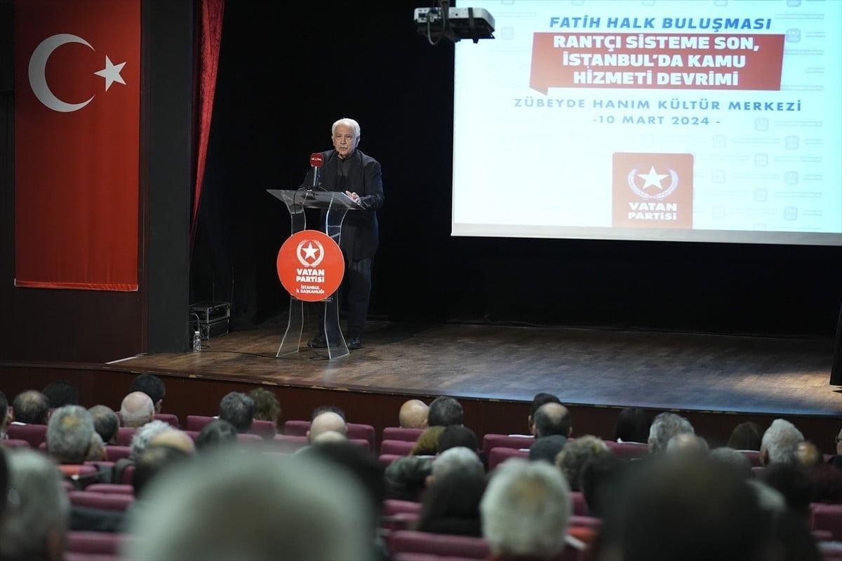 Vatan Partisi Genel Başkanı Doğu Perinçek, İstanbul Fatih’teki Zübeyde Hanım Kültür Merkezi’nde partisinin düzenlediği halk buluşmasına katıldı.