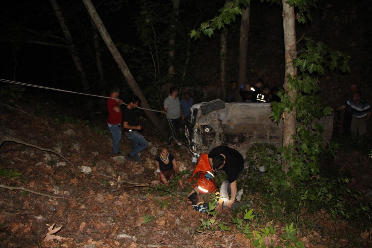 Olayı gören polis ekipleri 112 acil hattını aradı. Olay yerine sağlık, itfaiye, polis ve jandarma ekipleri sevk edildi. 07 FH 507 plakalı otomobilde bulunan şoför Murat U., beraberindeki Hüsne Elmas ve yabancı uyruklu Heyse Muhammet yaralandı. Yaralıları kurtarmak için ekipler ve Karacaören Mahalle halkı seferber oldu. Uzun uğraşlar sonucunda yaralılar, 100 metrelik uçurumun dibinden halatlar yardımı ile çıkarılarak ambulanslarla ilçedeki hastanelere kaldırıldı.