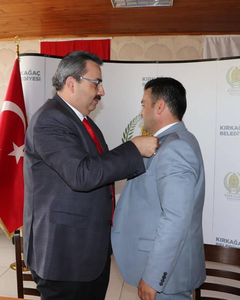Gedüz, “Yakamda gururla taşıdığım belediye başkanlığı rozetim Üstün başkanın yakasında daha güzel dalgalanacak. Bu rozetimi ona takıyorum. Kırkağaç’ımız için hayırlı uğurlu olsun.” dedi.