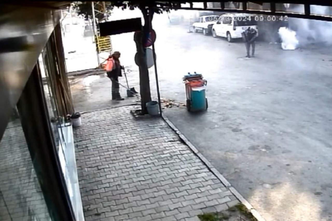 Olayda şans eseri yaralanan olmadı. Yaşananlar çevredeki bir iş yerinin güvenlik kamerasına yansıdı.