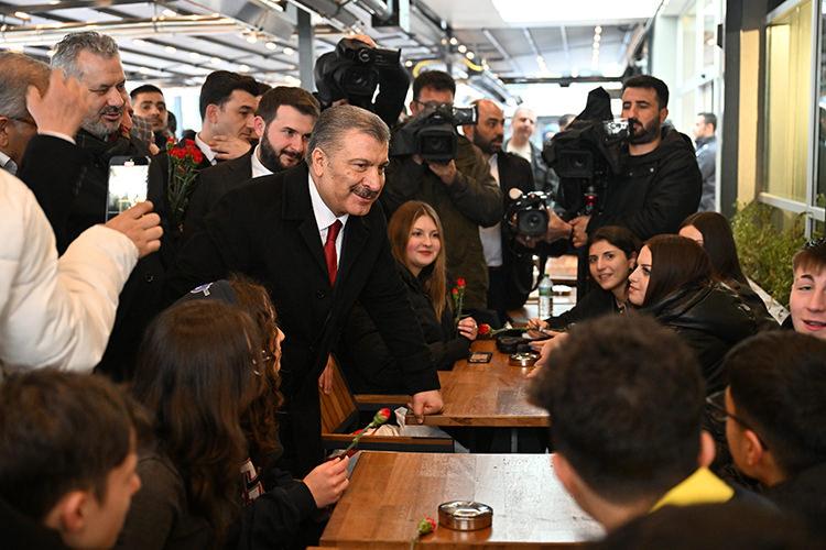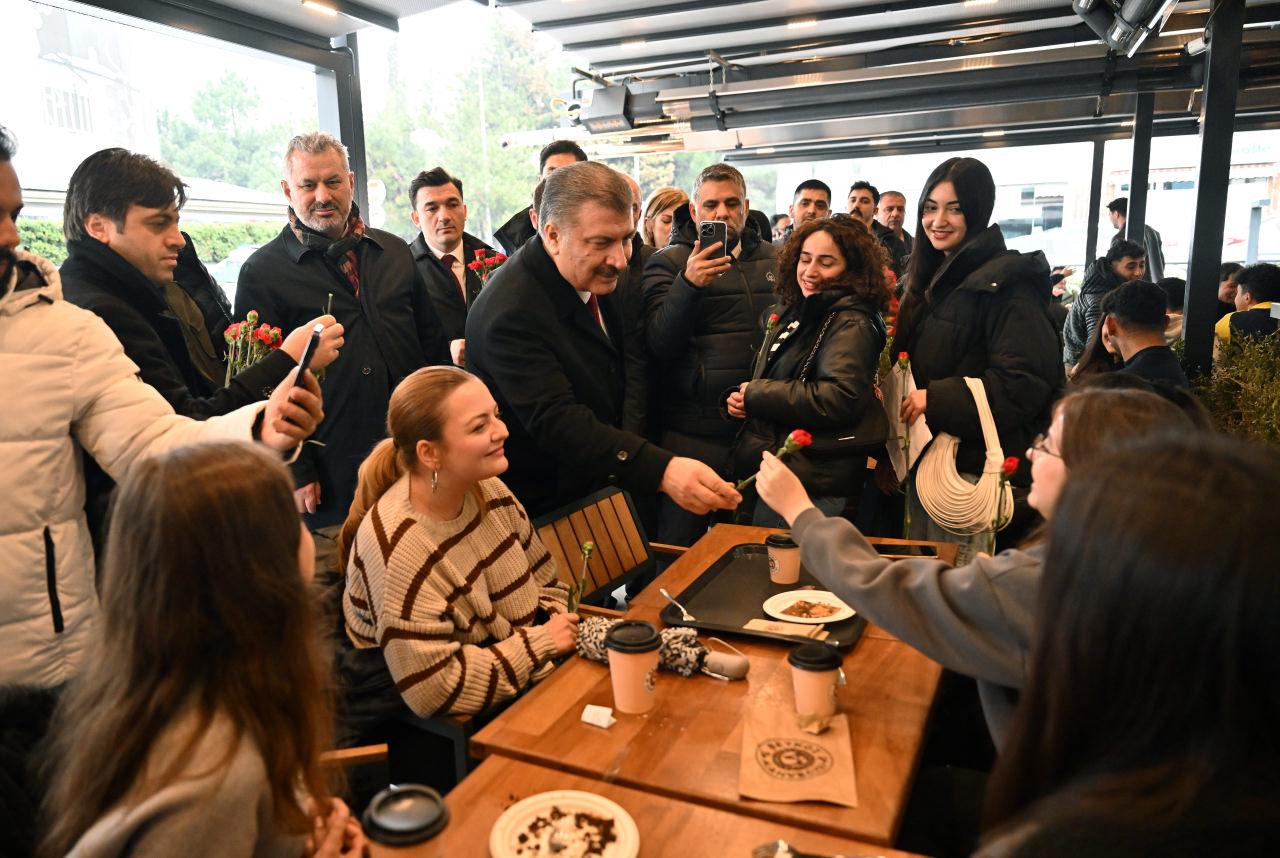Koca, daha sonra Cumhuriyet Caddesi’ndeki esnafı ziyaret ederek sorunlarını ve taleplerini dinledi. Yoldan geçen öğrencilerle fotoğraf çektiren Koca, 8 Mart Dünya Kadınlar Günü dolayısıyla kadınlara karanfil verdi.