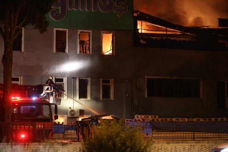 Kısa sürede büyüyen, klima ve sünger fabrikalarına da sıçrayan yangına ekipler müdahale etti.