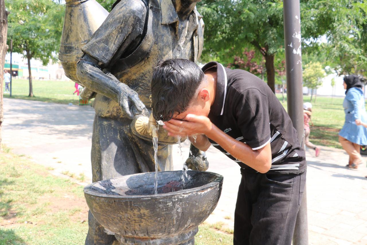 Bazı vatandaşlar serinlemek için parkları ve yeşil alanları tercih ederken bazıları ise çeşme başlarında üzerine su dökerek serinledi.