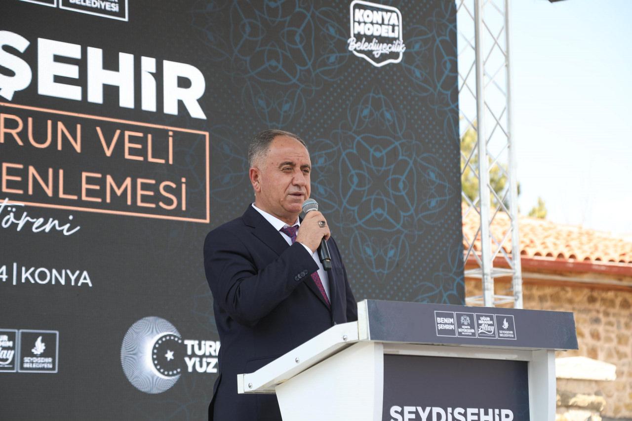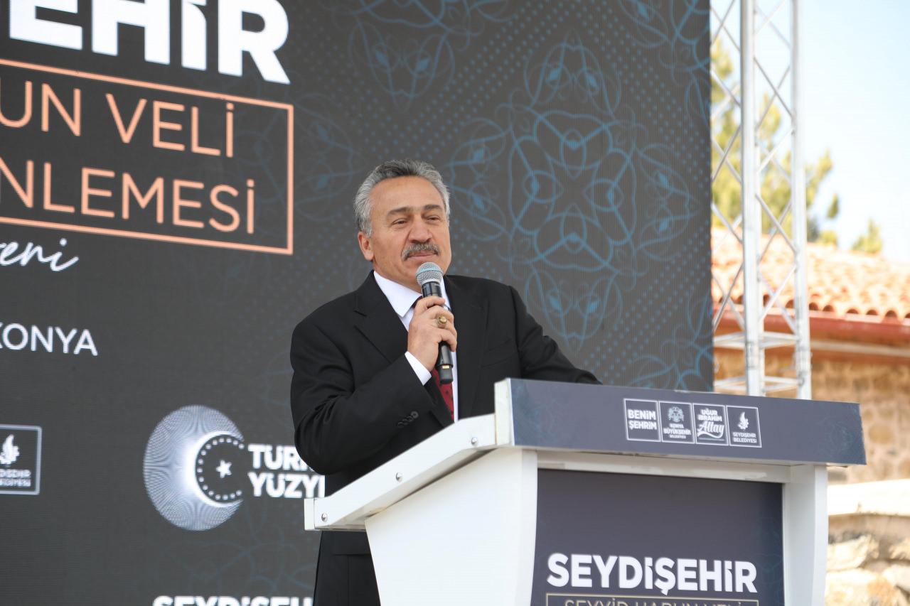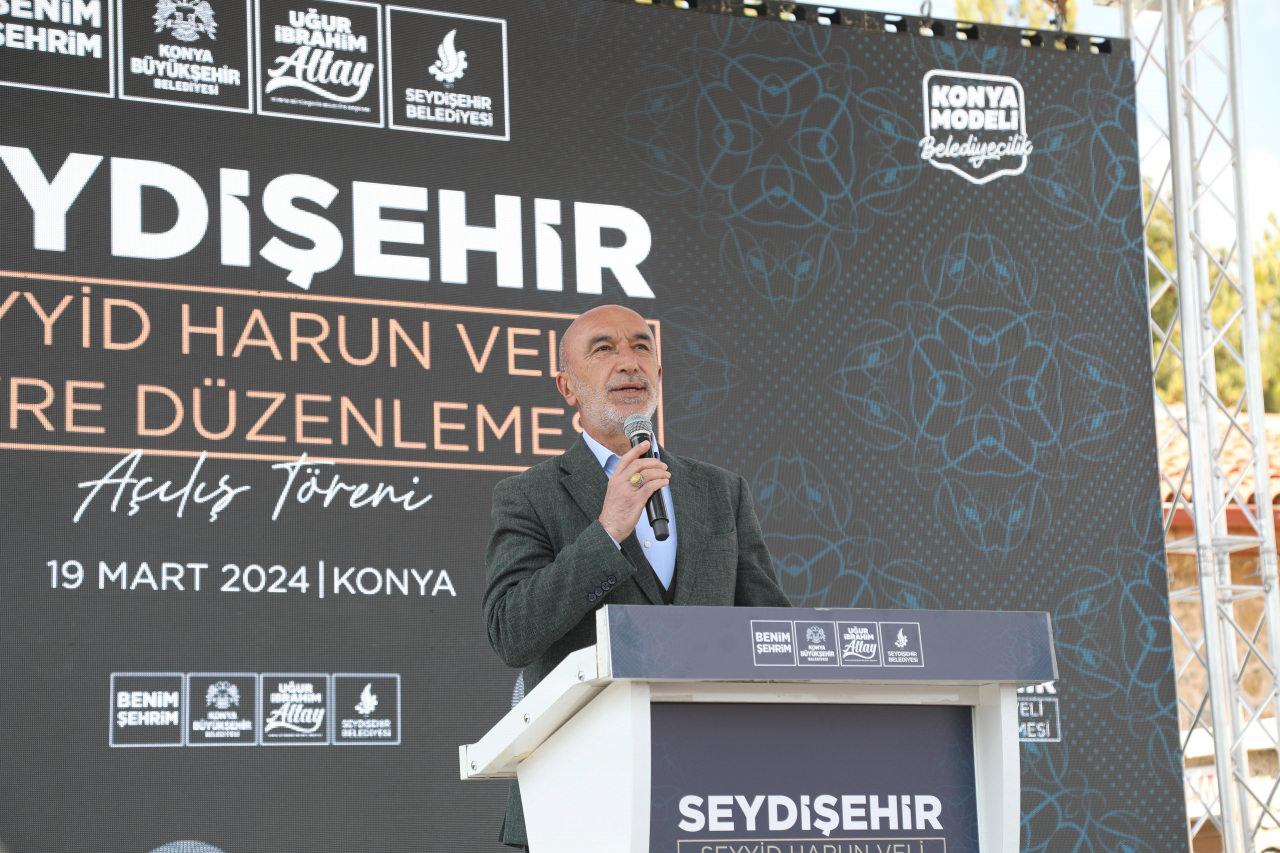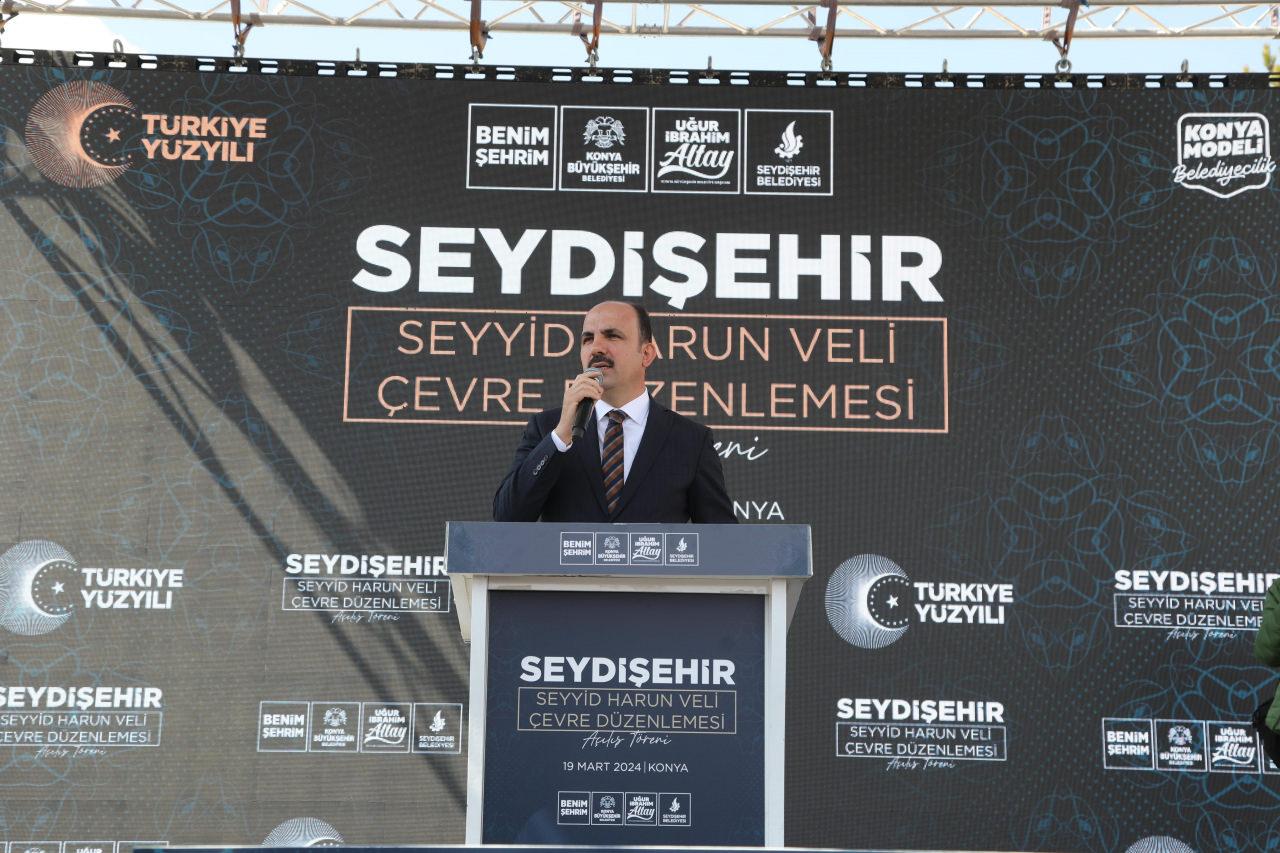 Konya Büyükşehir Belediye Başkanı Uğur İbrahim Altay da şehirlerin manevi merkezlerinin bulunduğunu belirterek, “İstanbul’un Eyüp Sultan’ı neyse Konya’nın Mevlana Meydanı neyse Seydişehir’in Seyyid Harun Veli Türbesi etrafı da bizim için o manada önemli manevi bir merkez. Bu merkeze hizmet etmek bizlere nasip olduğu için ne kadar şükür etsek azdır. Bugün ikinci etabın açılışını gerçekleştiriyoruz. ‘Konya Modeli Belediyecilik’ diye ifade ettiğimiz şey işte tam da bu. Biz birbirimizin devamında iş yapmayı sürdürebilen, yıkmak için değil sürdürmek için çalışan bir ekibiz. İnşallah üçüncü etapta da karşı tarafta imar planı uygulamamızı yaptık. O bölgenin kamulaştırmalarını yaparak, Bakırcıevi’nden bu tarafa doğru görüntüyü daha da açacağımız güzel bir alanı ortaya çıkarmış olacağız” ifadelerini kullandı.