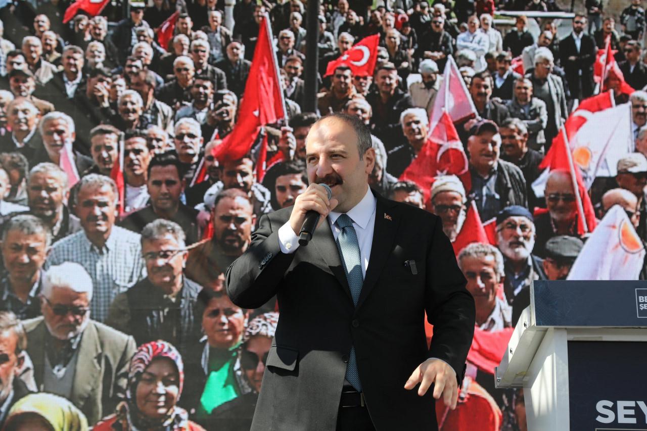 “Biz siyaseti, eğer karşımızdaki hemşerilerimiz bize bir ‘Allah razı olsun’ cümlesi kuruyorsa en büyük rütbe bizim için o. Bunun için yapıyoruz. Hemşerilerimiz ‘Allah sizden razı olsun şuradaki sıkıntımı giderdiniz, teşekkür ederim’, ‘ya şuraya şu hizmeti getirdiniz, Sayın Cumhurbaşkanımızdan Allah razı olsun, teşekkür ederim’ diyorsa biz o zaman doğru siyaseti yaptığımızı anlıyoruz. Rütbelerin en yücesine eriştiğimize inanıyoruz. İnanıyoruz ki; siz değerli hemşerilerimiz, şimdiye kadar olduğu gibi 31 Mart’tan sonra da bu hizmet anlayışını takdir edecek, bizim projeci, hizmetten yana olan, yatırımlardan yana olan, vatandaşlarımızın hayatını kolaylaştıran, konforunu artıran, şehirlerimizi daha yaşanabilir kılan siyaset anlayışımızdan yana oy kullanacak ve inşallah bizler de bu hizmet kervanına devam edeceğiz” diye konuştu.