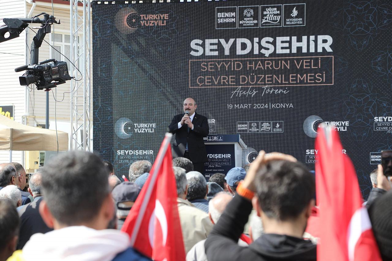 TBMM Sanayi, Ticaret, Enerji, Tabii Kaynaklar, Bilgi ve Teknoloji Komisyonu Başkanı, AK Parti Bursa Milletvekili Mustafa Varank da güzel bir açılış vesilesiyle Seydişehir’de olmaktan duyduğu mutluluğu dile getirerek, “Seyit Harun Veli Hazretlerinin camisinin, türbesinin etrafında Uğur Başkanımızın ilçe belediyemizle koordinasyon halinde yaptığı çok güzel bir çevre düzenlemesinin açılışını gerçekleştiriyoruz. Konya, kutlu bir şehir. Selçuklu’ya başkentlik yapmış bir şehir ve ecdadımız, buralarda, bu eserleri yaparak, camileri, türbeleri yaparak, hamamları yaparak aslında sadece kendi eş zamanlarındaki vatandaşlarına, kardeşlerine, hizmet etmek için bu eserleri üretmemişler; bu eserler, aslında bu topraklara vurulmuş birer mühür. Buraları ilelebet Türkiye Cumhuriyeti payidar oldukça İslam beldesi kılacak en güzel mühürler” cümlelerini kullandı.