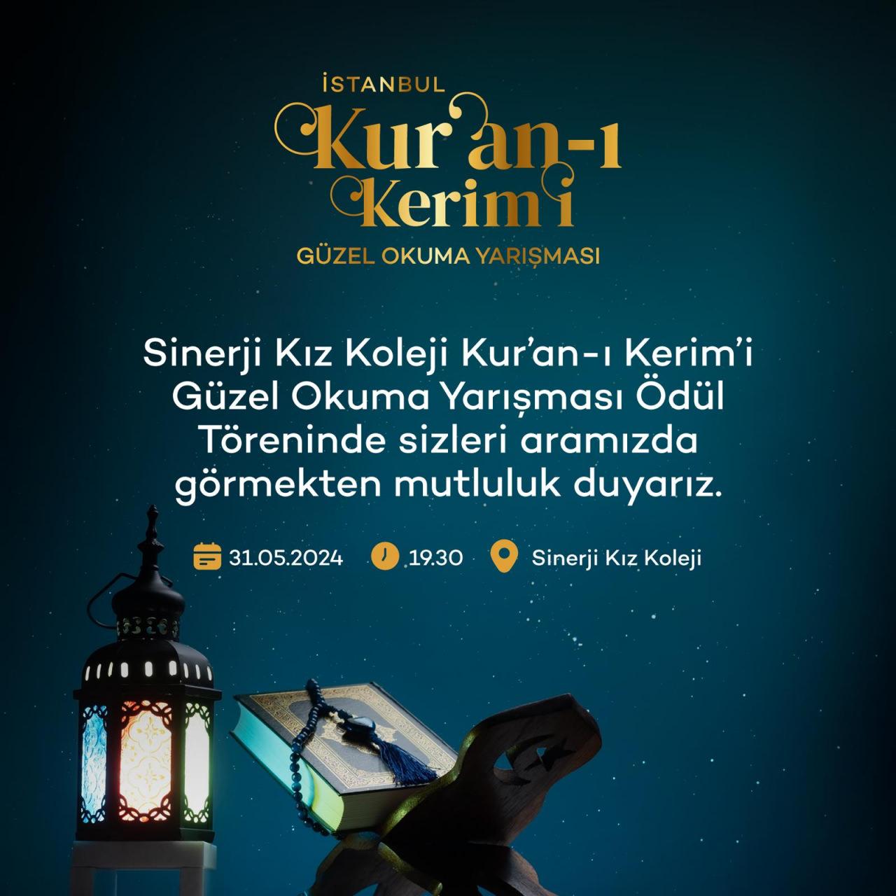 “İstanbul Kur’an-ı Kerim’i Güzel Okuma Yarışması”, İstanbul’un Başakşehir ilçesinde bulunan Sinerji Kız Koleji okulunda 31 Mayıs 2024 saat 19:30’da başlayacak.