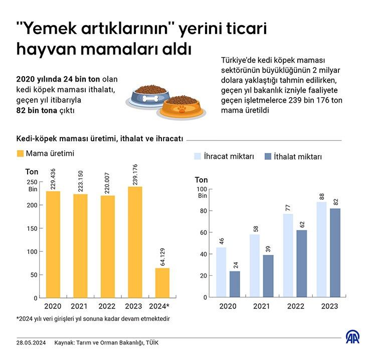 Türkiye gazetesinin haberine göre, günümüzde ülke genelinde 5.500 pet mağazası ve 2.000 pet kliniği bulunuyor. Bunun yanı sıra hayvan çiftlikleri, barınaklar ve pet otelleri faaliyet gösteriyor. Türkiye evcil hayvan ürün ve hizmetleri sektörü her yıl yaklaşık olarak yüzde 15 büyüyor. Kedi ve köpek mamaları neredeyse et fiyatları ile yarışıyor. Bugün iyi bir marka köpek mamasının kilogram fiyatı 400 lirayı buluyor. Aynı şekilde bilinen bir kedi mamasının fiyatı ise 400-500 lira civarında.