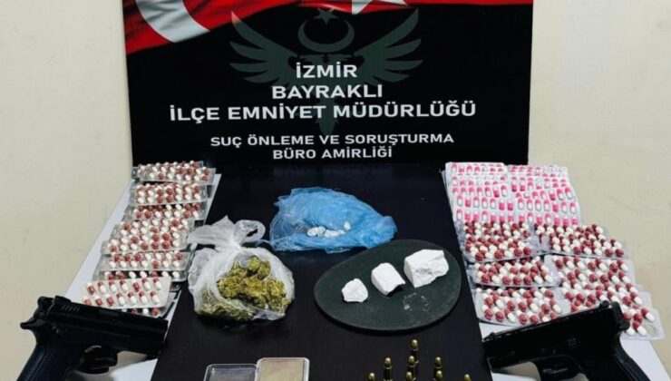 Öte yandan polis ekipleri tarafından adreste yapılan aramada, G.D. adlı başka bir şüpheliden, 2 ruhsatsız tabanca, 101 gram kokain, uyuşturucu nitelikli 861 sentetik hap, 51 gram esrar, 7 adet fişeklenmiş halde kokain maddesi ve 14 adet tabanca fişeği ele geçirildi.