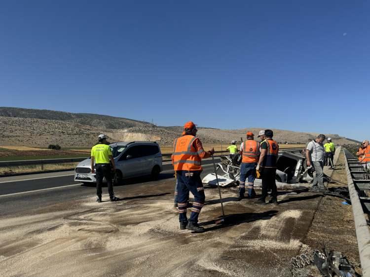 GALERİNİN DEVAMI <p>Tarsus-Adana-Gaziantep (TAG) Otoyolu'nun Gaziantep-Kahramanmaraş arasındaki bölümünde 4 aracın karıştığı zincirleme trafik kazasında 3 kişi hayatını kaybetti, 1 kişi yaralandı.</p><p>Hasan Kılıçparlar idaresindeki 27 AHK 33 plakalı çekici, Nurdağı ilçesi Şatırhöyük mevkisinde, önünde seyreden Veysel Oduncu'nun kullandığı 27 BMJ 57 plakalı otomobil ile Orhan Gül yönetimindeki 31 AKB 057 plakalı otomobillere arkadan çarptı.</p><p>Otomobiller de önlerinde seyreden Nuri Tayan'ın yönetimindeki 33 AOC 043 plakalı çekicinin arka kısmına çarptı.</p><p>Kazada, sürücüler Orhan Gül, Veysel Oduncu ile Gulsum Vaapova hayatını kaybetti, Bülent Aydınışık yaralandı.</p><p>Kaza nedeniyle kapanan yol, araçların kaldırılmasının ardından yeniden ulaşıma açıldı.</p>