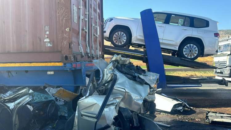 Otomobiller de önlerinde seyreden Nuri Tayan’ın yönetimindeki çekicinin arka kısmına çarptı.