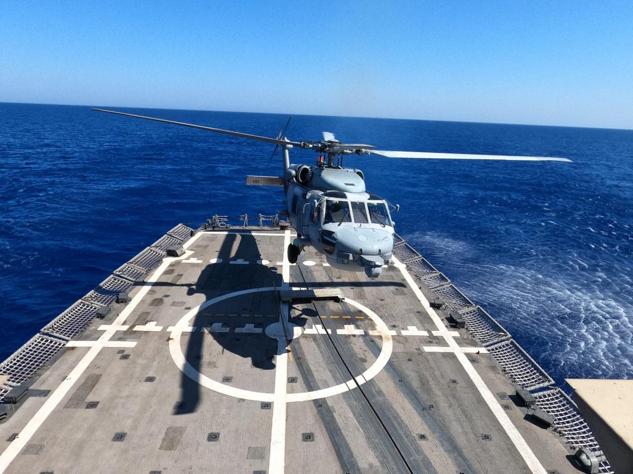 Milli Savunma Bakanlığı, TCG Gemlik fırkateyninin Libya açıklarında helikopterle arama kurtarma eğitimleri yaptığını bildirdi.