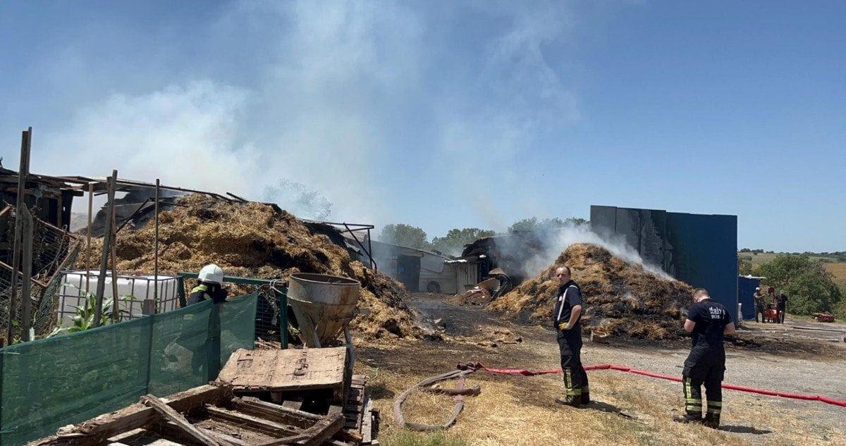 Alevler kısa sürede büyüyüp, tarlanın yanındaki hayvan çiftliğindeki samanlara sıçradı.