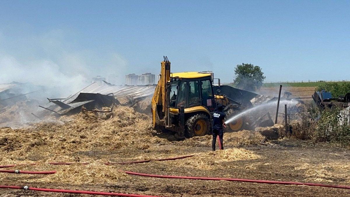 Yangında 50 dekar ekili buğday ile çiftlikteki samanlar yandı. Jandarma ekipleri yangının çıkış nedenini belirlemek için çalışma başlattı.