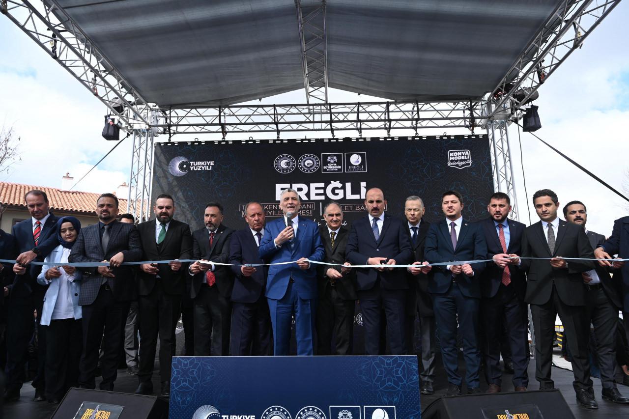 Konuşmaların ardından Çevre, Şehircilik ve İklim Değişikliği Bakanlığı tarafından Ereğli’ye kazandırılan 200 bin metrekarelik Konya’nın en büyük Millet Bahçesi ile Konya Büyükşehir Belediyesi’nin ihya projesi Tarihi Kent Meydanı Cephe İyileştirme Projesi’nin açılışı dualarla yapıldı.