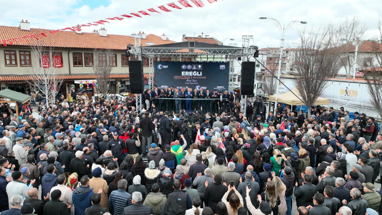 Konya Büyükşehir Belediyesi’nin Ereğli’ye kazandırdığı Tarihi Kent Meydanı Cephe İyileştirme Projesi ile Çevre, Şehircilik ve İklim Değişikliği Bakanlığı’nın yatırımı olan Ereğli Millet Bahçesi’nin açılışı Ticaret Bakanı Ömer Bolat’ın katıldığı coşkulu törenle gerçekleştirildi.