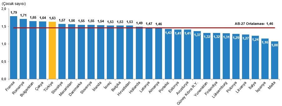 Doğurganlık hızında Türkiye’nin Avrupa ülkeleri ile karşılaştırılması durumunda ise durumun vahameti daha net ortaya çıkıyor. Avrupa Birliği üyesi 27 ülkenin toplam doğurganlık hızı incelendiğinde Türkiye’nin birçok AB ülkesinin arkasında kaldığı ve birçok Batı ülkesinin de gerisinde kalma durumunun oluştuğu net bir şekilde görülüyor. Avrupa’da 2022 yılında en yüksek toplam doğurganlık hızına sahip olan ülke 1,79 çocuk ile Fransa olurken, en düşük toplam doğurganlık hızına sahip olan ülke ise 1,08 çocuk ile Malta olduğu belirtiliyor. Türkiye’nin Fransa, Romanya, Bulgaristan, Çekya’nın ardından beşinci sırada yer aldığı gözler önüne seriliyor.