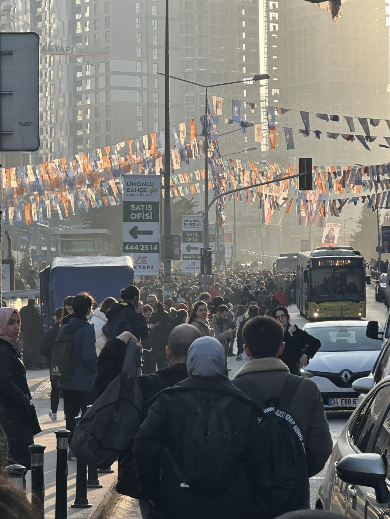Metroya binmek isteyen yolcuların yönlendirildiği otobüs duraklarında da kalabalık oluştu.