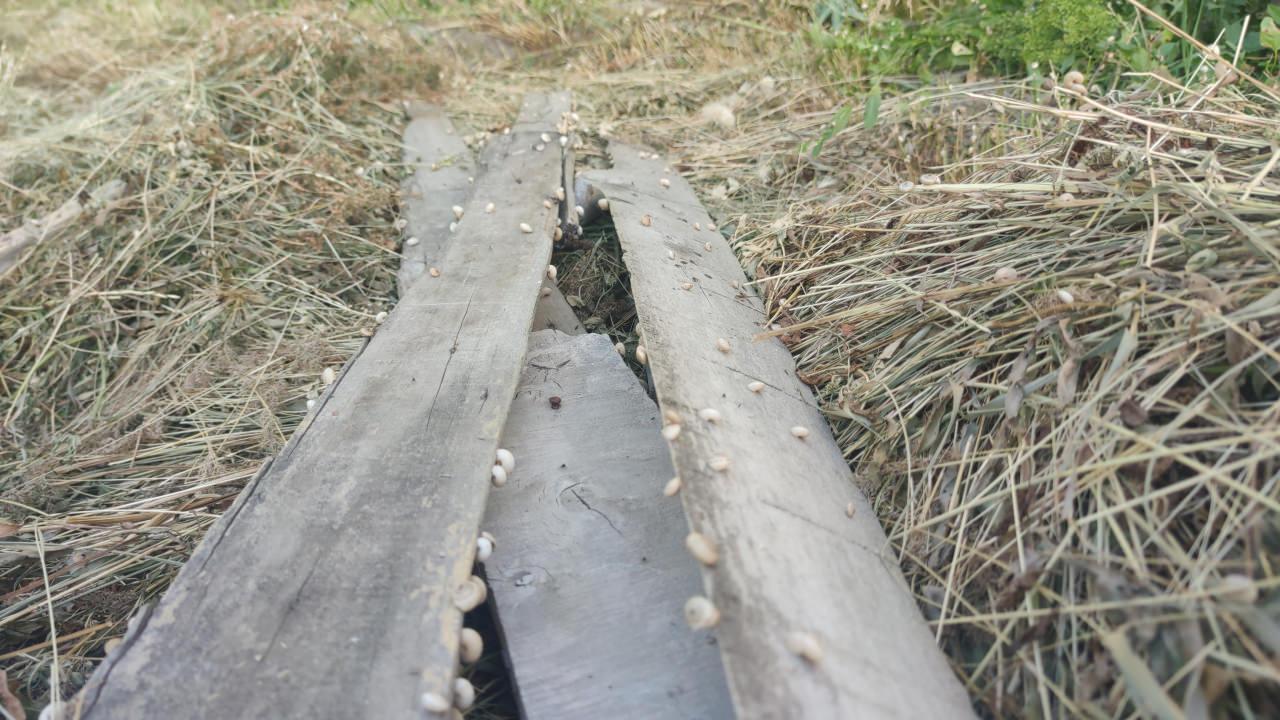 Bu sene aşırı derecede küçük salyangozların olduğunu ifade eden Mehmet Ali Akyüz, “İlaçlama yapmama rağmen yine de fayda etmedi. Artık ne yapacağımı şaşırdım kaldım. Tırpanı çekerken onlara değiyor, tırpanın ağzı kör oluyor. Bahçenin her tarafında var. İlk kez böyle bir durumla karşılaşıyorum” dedi.