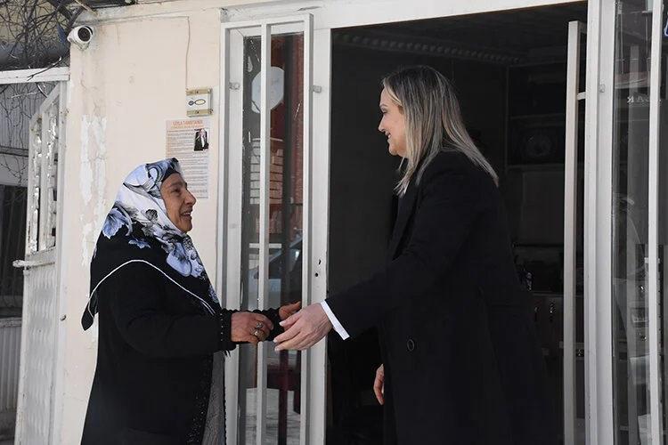 Yıllardır hizmet ettiği mahallenin “Leyla ablası” olarak bilinen Tanrıtanır, muhtarlık bürosuna gelen mahalle sakinlerinin tebriklerini kabul ediyor.